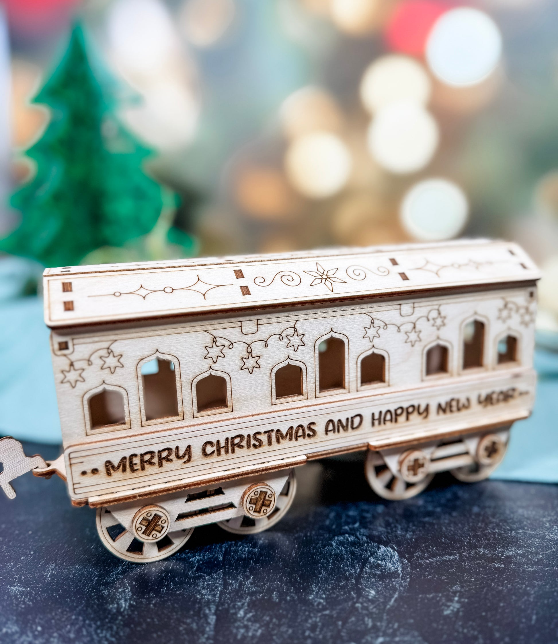 All aboard the Santa Express – the merriest train in town! This beautifully crafted wooden train is packed with holiday spirit, featuring intricate details, festive designs, and a touch of North Pole magic. From its cheerful engine to the charming caboose wishing you a Merry Christmas and Happy New Year, this train is ready to spread joy wherever it goes. Perfect for under the tree or as part of your holiday display, the Santa Express is here to make your Christmas extra special!