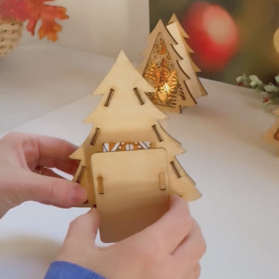 - Light up your holidays with this whimsical wooden tea-light shadow box!
