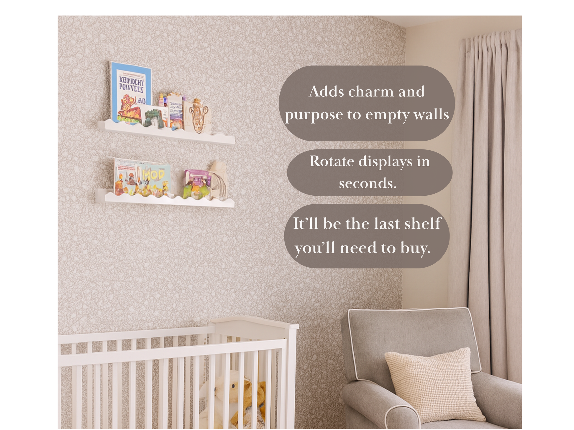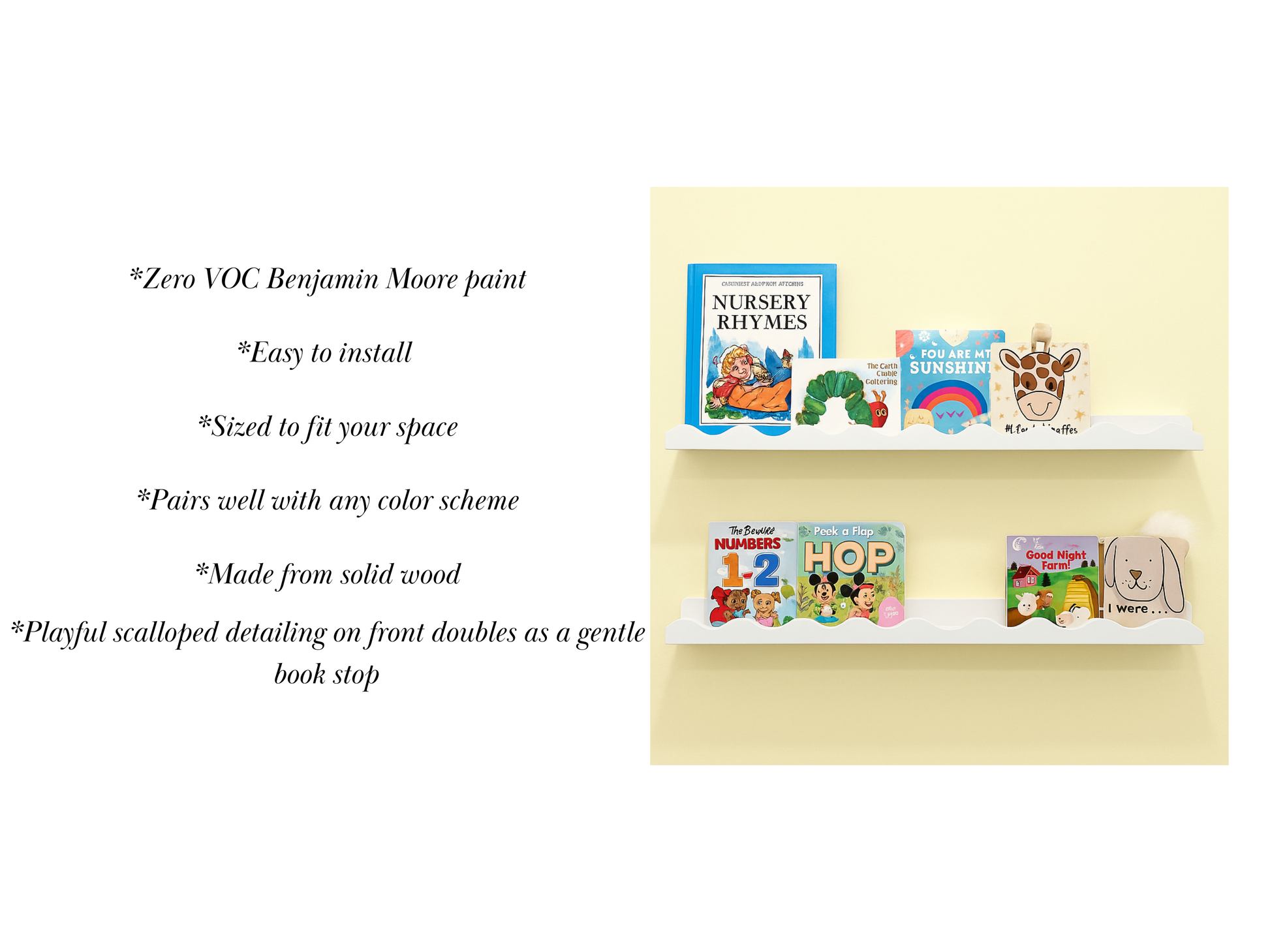 š A thoughtful gift for new parents, birthdays, or just becauseāeach White Painted Scalloped Kid's Floating Shelf is crafted differently, made to matter, and built to grow with your child.